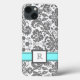 Coques Case-Mate iPhone iPad Custom Monogramme Gris Aqua Floral Damask