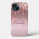 Ouah ! Juste à temps pour la saison des Vacances 2021...Les coques iphone sont disponibles ici sur Zazzle. Ce coque est pour la Mini Version et le coque a un arrière - plan rose brillant avec des gouttes de parties scintillant descendant et avec un coeur de diamant rose autour du centre. Vous pourrez personnaliser le texte à l'intérieur du coeur avec le nom de la personne pour laquelle il est destiné. J'espère que vous appréciez votre nouveau coque pour votre nouveau téléphone !