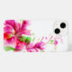 iPhone 14 coque est montré avec une belle impression de design tropical rose. Customiser ou acheter tel quel.