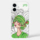 IPhone 16 Phone Cover avec Green Flapper Girl sur elle ajoutera un flair coloré à votre téléphone. Personnalisez avec vos initiales.