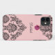 L'iPhone de monogramme de damassé 5 cas avec le motif noir de damassé et la glace rose jewel bling imprimé sur le cas et beaucoup de style pour porter votre téléphone portable. Conçu pour des femmes ou des filles et protégera votre téléphone d'une manière élégante. Les couleurs incluent le rose et le noir