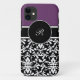 iPhone fait sur commande de monogramme 5 cas avec le motif de damassé et la couleur pourpre d'arrière - plan que vous pouvez changer. Ajoutez vos initiales ou votre nom.