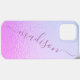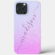 Iridescente Girly Pink Shimmer Personnalisé Nom Téléphone Case dispose d'un motif moderne rose et bleu iridescente shimmer avec votre nom personnalisé dans le centre. Conçu par ©Evco Studio www.zazzle.com/store/evcostudio