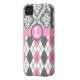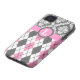 Jacquard et damas motif rose, gris monogramme coques. Ce design mignon et girly présente un motif Jacquard en rose, gris, blanc avec des lignes croisées noires et un damas blanc gris sur la partie supérieure. Il y a une bande rose en face et un cercle avec votre monogramme. Ce design élégant, élégant et élégant est entièrement personnalisable. Vous pouvez modifier la couleur arrière - plan - gris et la couleur du texte en choisissant parmi plus de 200 couleurs dans le tableau de couleurs Zazzle. Contemporain et moderne avec une touche rétro.