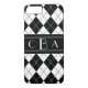 Monogram iPhone 7 Coque avec initiales encadré en bande noire avec bordures blanches sur un motif Jacquard noir et blanc élégant.