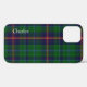 Le coque élégant iPhone 12 fait dans un plaid écossais traditionnel bleu, vert, jaune et rouge coloré du clan Young. Le texte blanc qui tourne verticalement, sur le côté gauche, est prêt à être personnalisé. Une façon élégante et excellente de protéger votre appareil électronique, et de faire un grand cadeau idée.