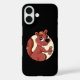iPhone 16 Coque avec l'illustration d'un mignon écureuil rouge tenant une cacahuète, avec un cercle beige sur un arrière - plan marron, un dessin animal mignon pour les enfants de Maxi Harmony