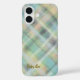 Coques Case-Mate iPhone Joli script monogramme plaid turquoise jaune gris