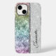 Joli Iridescente Silver faux parties scintillant monogramme I-Phone boîtier de parties scintillant moderne luxe chic girly shimmer unicorn arc-en-ciel Iridescente parties scintillant et parties scintillant Argent. Belle couverture moderne et cool pour les filles qui aiment les designs brillants et classe. Montrez votre style personnel, regardez à la mode, branché et vous sentez élégant avec un design unique sur un accessoire mobile ou customisez-le sur un autre produit de votre choix. Ajoutez votre nom avec une typographie de calligraphie cool et moderne. Il fait l'idée cadeau parfait pour un doux 16 anniversaire, mariage, douche nuptiale, anniversaires, baby showers ou fêtes de bachelorette, jour des valentines ou en cadeau en général.