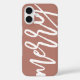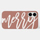 Rose moderne joyeux script neutre et blanc étui de téléphone de Noël.