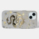 Dragon aux étoiles d'argent et d'or tout autour. La couleur arrière - plan est personnalisable. iPhone 15.