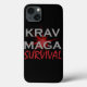 Boîtier de téléphone avec Krav Maga Survival conçu en rouge et argent.