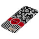Cette caisse plus personnalisée de l'iPhone 6 faits sur commande noirs et blancs de Coque-Compagnon a une damassé florale et un motif rayé d'arrière - plan avec une bande et un cercle rouges et blancs pour ajouter votre nom, initiales, monogramme ou tout autre texte à. Ce nouveau cas moderne et à la mode fait une déclaration chic pour le fashionista de jeunes de hanche ! Si vous avez besoin d'aide, envoyez niteowlstudio@gmail.com.