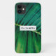 Un étui téléphonique avec une photo closeup d'une feuille verte tropicale arborant des frondes de palmiers vibrantes. Un cadre rectangle superposé avec votre texte à l'intérieur.