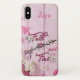 Personnalisez votre téléphone cellulaire avec ce coque iphone spirituel "Un de genre". Avec des mots d'inspiration..."La foi sur la peur"... et une belle flèche nichée parmi de jolies fleurs roses et blanches aux plumes violettes. Art graphique original par l'artiste Kerry Miller.