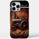 Un tracteur vintage à vapeur repose dans un champ de blé, ses roues coulent dans le sol riche. Le soleil couchant projette une lumière chaude à travers la scène, mettant en évidence les détails complexes de la machine.