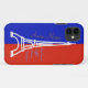 La tour Eiffel. Illustration stylisée en blanc sur bleu et rouge. Ajoutez votre nom à ce design "monument de Paris" à thème