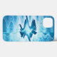 Une fractale simple, bleue et blanche hors du commun qui suggère un lac d'eau de fonte dans une vallée entre des montagnes recouvertes de glacier. Ajoutez votre propre texte.