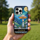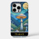 Ce boîtier téléphonique présente un paysage serein dominé par un grand champignon à cages clairs avec un dessous doré, sur fond de montagnes bleues profondes sous une pleine lune lumineuse en haut à droite. De plus petits champignons parsèment les collines verdoyantes et vallonnées, dans une ambiance magique et tranquille. Le design est personnalisé avec "Elizabeth" sur une bande noire en bas.