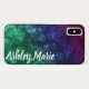 La caisse personnalisée de téléphone a de jolies bulles de bokeh avec les tons pourpre foncé de bijou, le bleu et le vert. Customisez pour ajouter votre nom ou vous pouvez enlever le nom si vous voudriez seulement l'arrière - plan.