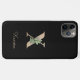 Élégant boîtier de téléphone noir dispose d'un monogramme botanique en or au centre.