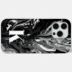 Simple, élégant modèle de lettre initiale monogramme boîte de téléphone avec un motif tourbillon noir et blanc et la typographie moderne minimaliste en blanc. cette étui téléphonique personnalisée fait le cadeau customisé parfait et l'accessoire réfléchi.