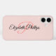 Ce boîtier de téléphone est doté d'un arrière - plan rose brumeux avec un nom de script noir et un monogramme de lettre initiale rose. Personnalisez les champs de texte, supprimez tout texte ou cliquez sur personnaliser pour sélectionner un style, une taille et une couleur de type que vous souhaitez.