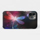 Lumineuse, volante, libellule rouge, avec des ailes transparentes et détaillées sur arrière - plan sombre, nocturne, lumineux avec plantes tropicaux et lucioles. libellule rouge.