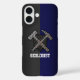 Ce boîtier de téléphone à l'allure industrielle est muni d'une paire de marteaux de pierre du géologue traversés par un bouclier, représentés par une texture de tôle de diamant usée. La toile de fond gris et bleu bicolore fait apparaître votre nom en lettres blanches sous le logo. Remplacez le texte par votre nom, ou supprimez le texte pour une version sans mot !