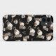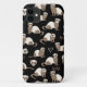 Main-drawn ferrets, xoxo and hearts pattern iPhone 11 case, black background.