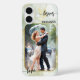 Boîtier téléphonique avec votre photo personnalisée sur un boho vert design abstrait chic boho en or vert avec des textes de script. Beau comme un cadeau pour une mariée ou un cadeau fiançailles.