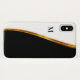 Cas moderne de luxe chic de téléphone portable de monogramme dans l'or, le noir, et le blanc avec l'initiale nommée dans un style masculin que vous pouvez personnaliser en ligne en remplaçant simplement notre lettre de nom de modèle par le votre ou des monogrammes. Une conception lisse et moderne appropriée aux dames ou aux hommes.