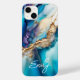 Coques Case-Mate iPhone Marbre bleu or moderne Nom personnalisé