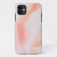 Un beau design coque iphone féminin dans des tourbillons en marbre rose éthérée, jaune et blanc fait une belle déclaration. Personnalisez le modèle de texte avec vos initiales monogrammes pour un coque personnalisé avec élégance.