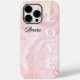 Étui personnalisé rose blush marbré pour iPhone 14 Pro Max – Paillettes dorées et fond subtil « AMOUR » | Cadeau personnalisé élégant pour la mariée, l'Aïd, l'anniversaire de mariage, la fête des mères et plus encore.