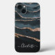 Abstrait moderne Shimmering bleu foncé aquarelle marine bleu et cuivre arrière - plan. Nom personnalisé élégant du script. Personnalisez ce beau coque iphone avec votre propre nom.