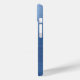 Cet élégant étui de téléphone personnalisé présente un monogramme et un prénom en écriture moderne noir et blanc sur un arrière - plan en métal brossé bleu tendance.
