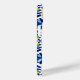 Un motif floral bleu et blanc stylisé, avec des touches d'orange, dans le style traditionnel Talavera