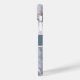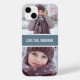 Un bel étui de design moderne pour iPhone avec 2 de vos photos préférées en haut et en bas avec une bande grise bleue foncé au milieu avec typographie.