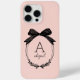 Moderne Black Bow Stylish Girly Blush Pink Monogram iPhone 15 Pro Max Coque.