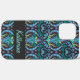 Coques Case-Mate iPhone Moderne Damask Art Déco Noir Turquoise Bleu Nom