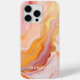 Moderne Elegant Peach Gold Marble Personnalisé Nom iPhone 15 Pro Max Coques dispose de votre nom personnalisé dans une élégante typographie de script de calligraphie sur un arrière - plan moderne pêche, orange, jaune et or marbre. Un cadeau parfait pour elle pour l'anniversaire, maman pour la fête des mères, soeur ou bestie pour Noël et les vacances. Conçu par ©Evco Studio www.zazzle.com/store/evcostudio
