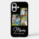 Mom Established Modern Script Black 3 Photo iPhone 16 Case. Replace the photos with your own and customize the "EST." date with the years your children were born.