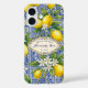 Coques Case-Mate iPhone Monogram Name Lemon Blue French Country Tile
