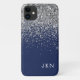 Argent et Marine Blue Faux Parties scintillant à étincelles et à gouttes broyées Monogramme en métal Nom et téléphone initial. Cela rend le cadeau parfait pour 16 ans, mariage, douche nuptiale, anniversaire, baby shower ou bachelorette pour quelqu'un qui aime le luxe glam et les styles chic.