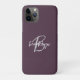 Cet élégant étui téléphonique personnalisé présente un monogramme et un prénom dans un script gris et blanc moderne sur un arrière - plan prune violet tendance.