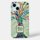 Ce coque iphone est décoré d'un arbre de vie en mosaïque colorée sur un arrière - plan vert. Facilement personnalisable avec votre monogramme. Fait un grand cadeau personnel. Mosaïque originale © Michele Davies.