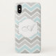 Coques Case-Mate iPhone Monogramme bleu et gris de Chevron de zigzag