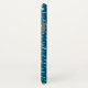 Coque iphone personnalisé en gouttes bleues avec le nom monogramme. Belles gouttelettes d'eau dans différentes nuances de bleu, turquoise et turquoise. Customisez ce joli motif d'aqua bleu avec votre nom ou votre nom de famille initial.