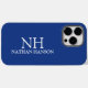 Boîtier de téléphone moderne avec un design bleu simple et minimal avec votre monogramme en caractères gras avec votre nom.